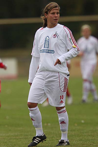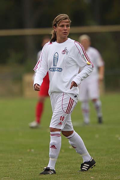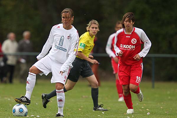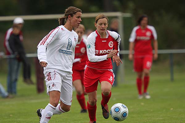 verlagert - und dort stand Stefanie Schäfer im Tor der Gastgeberinnen. Auch wenn nach einer ersten Welle der Druck auf das Schäfer-Tor wenigstens etwas abnahm, die erste Viertelstunde gehörte einzig und allein dem 1. FC Köln - wobei man zu den Karlsruherinnen