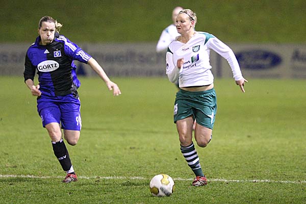 Bresonik mit einem wunderschönen Doppelpass gleich ein absolutes Highlight, Bresonik überwandt Bianca Weech im HSV-Tor zum 1:0 für Duisburg. Nur vier Minuten