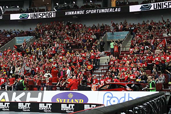 das Finale der Herren stand nun auf dem Programm und mit der Paarung Falun gegen Storvreta gab es sogar eine Partie mit Derby-Charakter. In puncto Fan-Unterstützung hatte Storvreta, die gleich einen ganzen Sonderzug gechartert