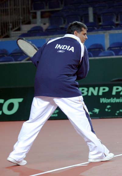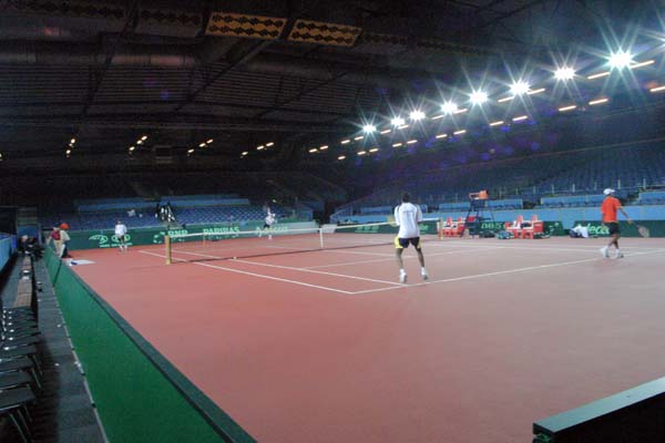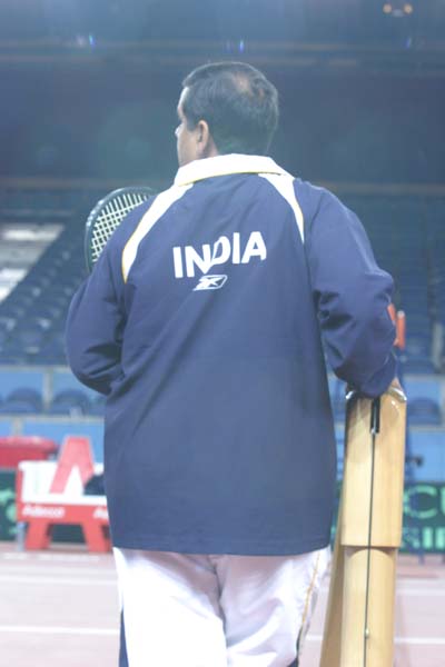 Daviscup NED-IND: Betreuer und Halle (IND)